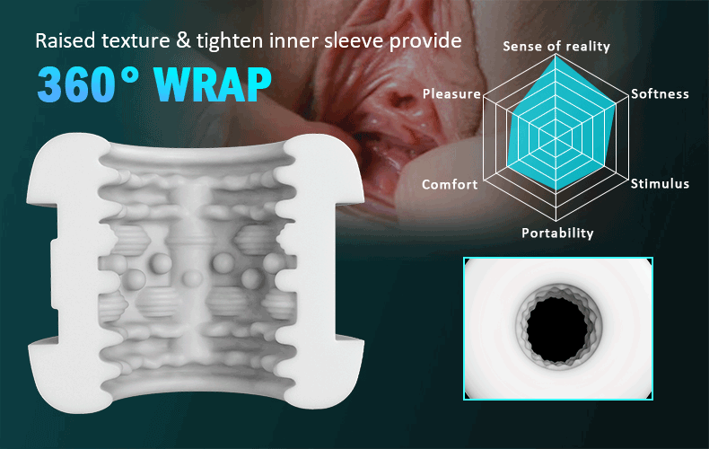3. Through channel with soft inner sleeve suits for any size penis and visually see orgasm ejaculation.