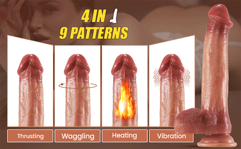 This 8.66-inch awesome penis can bring your fantasies to life with 4 functions—vibration telescoping swing and heating. It’s upgrading shape varied modes and powerful motor deliver authentic internal massages for sheet-clenching climaxes. What’s more upgrading-looking shaft thrusts back and forth with 9 modes providing powerful lifelike stimulation to make your erogenous zone release. With 10M remote control you can use it everywhere anytime at your own pace. The upgrade motor also ensures lower machine-stuck rate than any other similar dildos and the consistency of the powerful moving when it’s inside your body delivering body shaking orgasms every single time! 38° heating makes a contribution to the ultimate lifelike experience as well. The vivid glans simulating veins and lifelike testicles bring you a strong visual impact! It can totally satisfy your need!