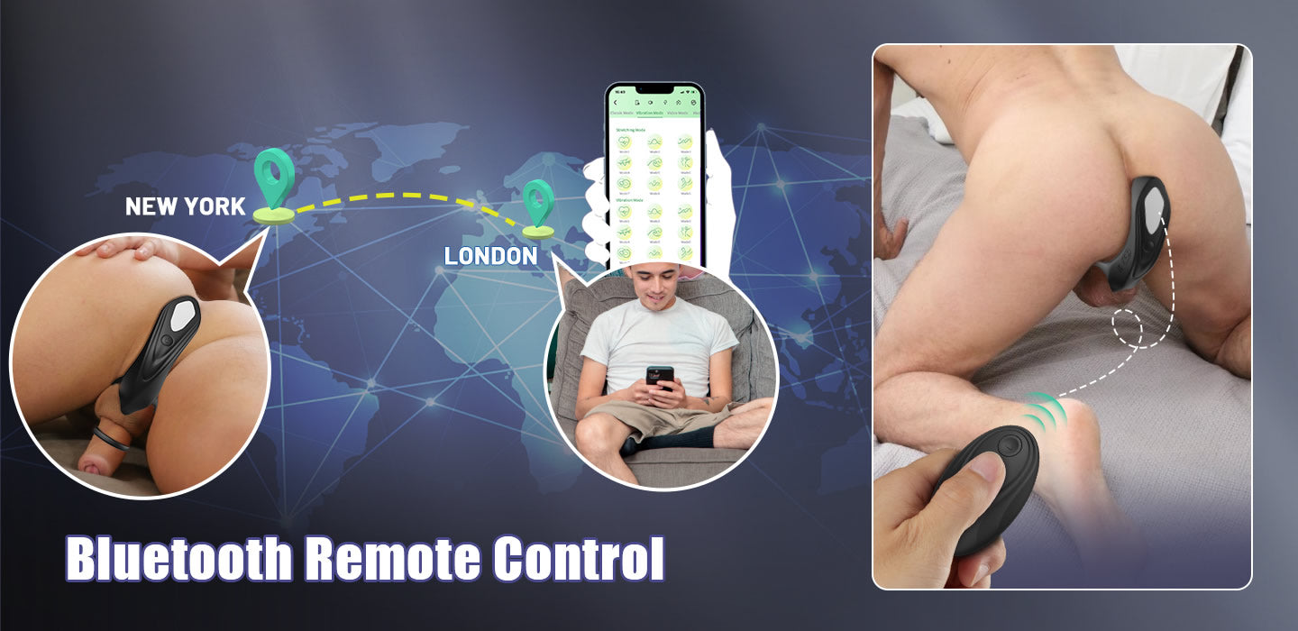 9 thrusting vibrations and 2 ways to control: Bluetooth and remote convenient for multi-player let your partner under your control orgasm; worth mentioning the Bluetooth control can make your partner jump for your excitement thousands of miles apart. Multi-frequency adjustable massage helps you to improve your sexual performance and the highly elastic silicone can be worn securely on different body types allowing you to experience precise prostate anal perineum and penis stimulation at the same time.