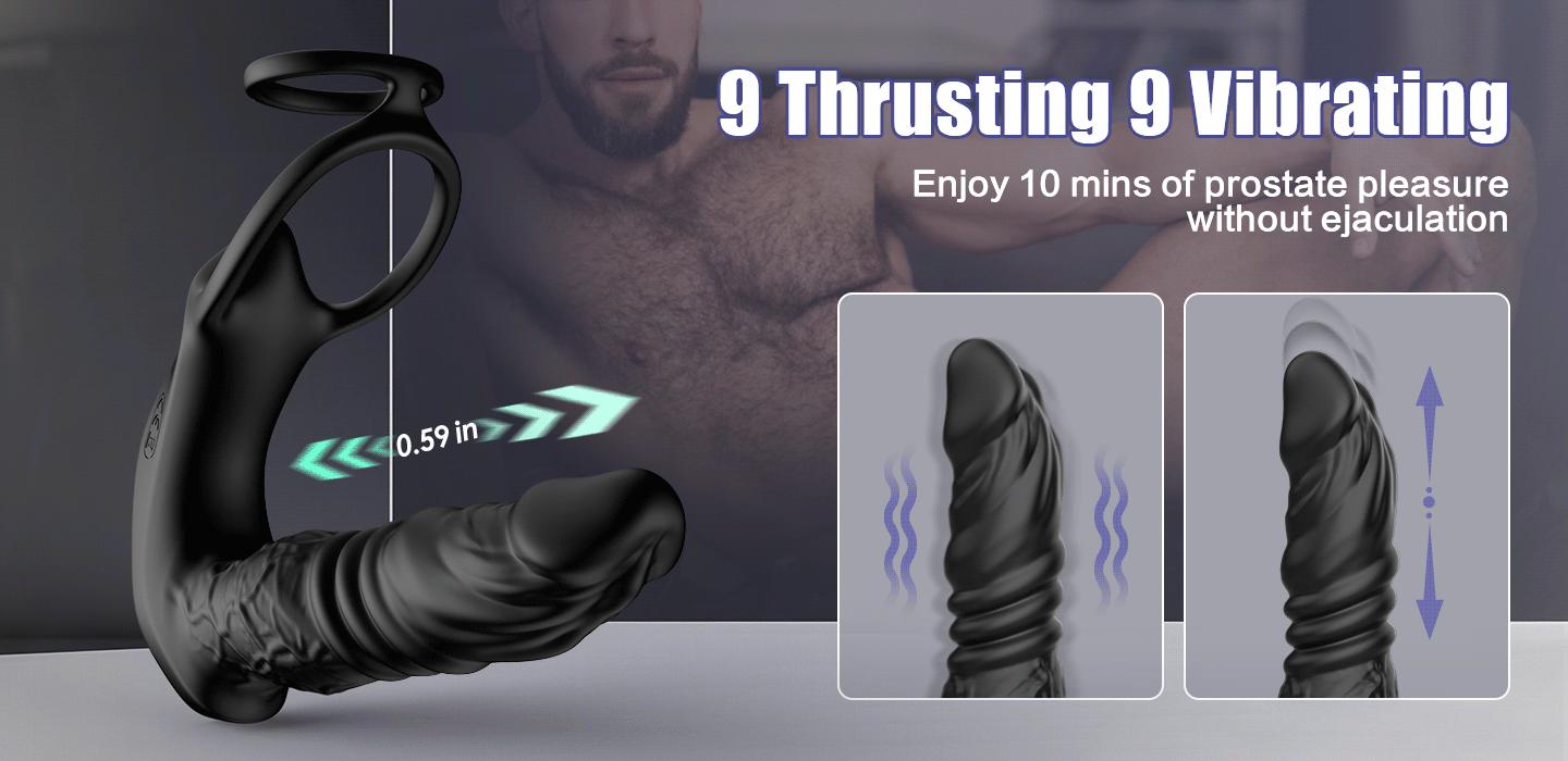 - Features: 9 Powerful Thrusting 9 Vibrating Sphincter Stimulation